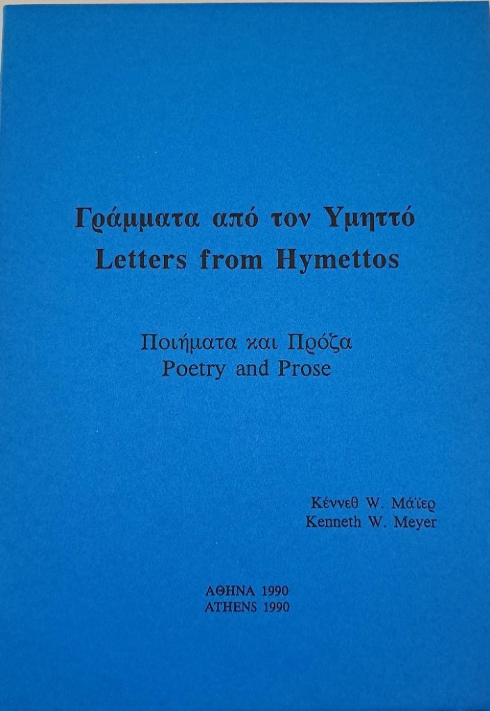 This is an out-of-print short volume of poetry and prose in Greek and English I put together in Athens in 1990. I suppose I might have a few copies lying around in case anyone feels they must have one.